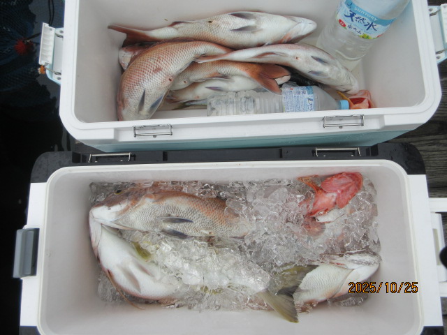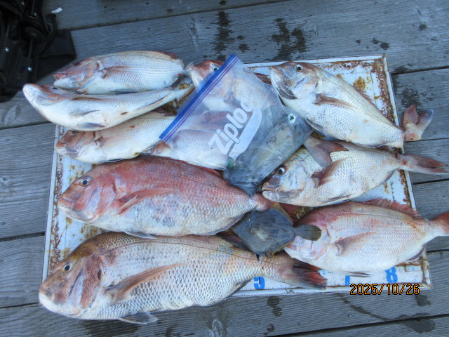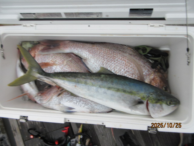 田島さん達の釣果マダイ71センチから 他アオリイカ