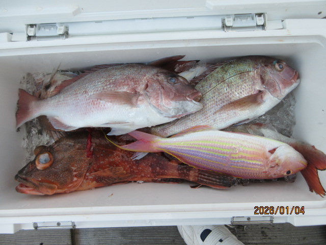 明けましておめでとうございます今年も宜しくお願いします。星野さん達の釣果ウッカリカサゴ46センチから マダイ 他